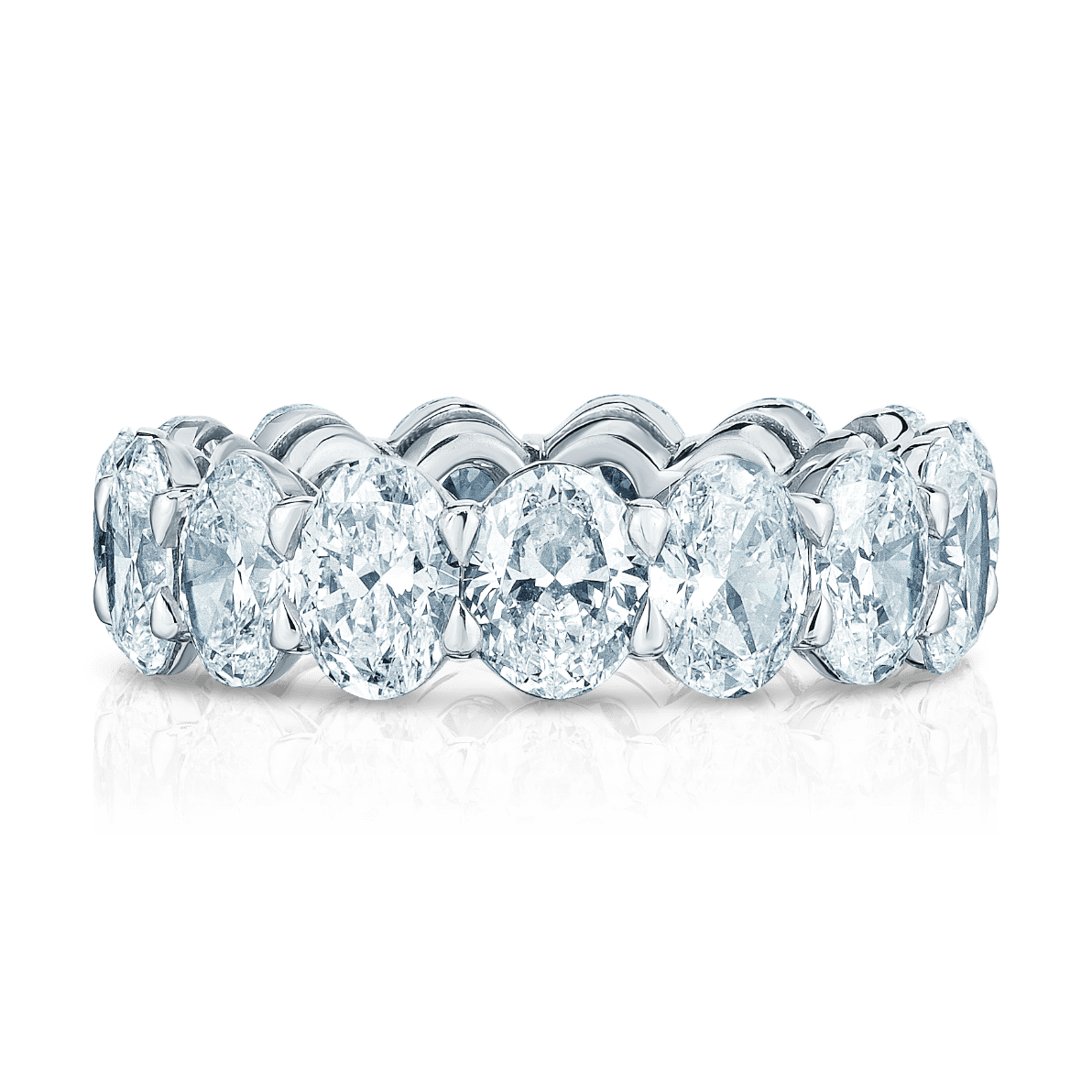 Step into a modern romance with an oval diamond eternity band. Its elongated shape and brilliant faceting create a captivating silhouette that marries contemporary chic with classic allure. Ovals are popular for the sparkle and elongated shape, often making the ring look bigger than it really is.