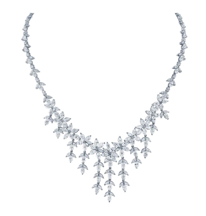 Cascading diamond necklace featuring 235 marquise and round diamonds