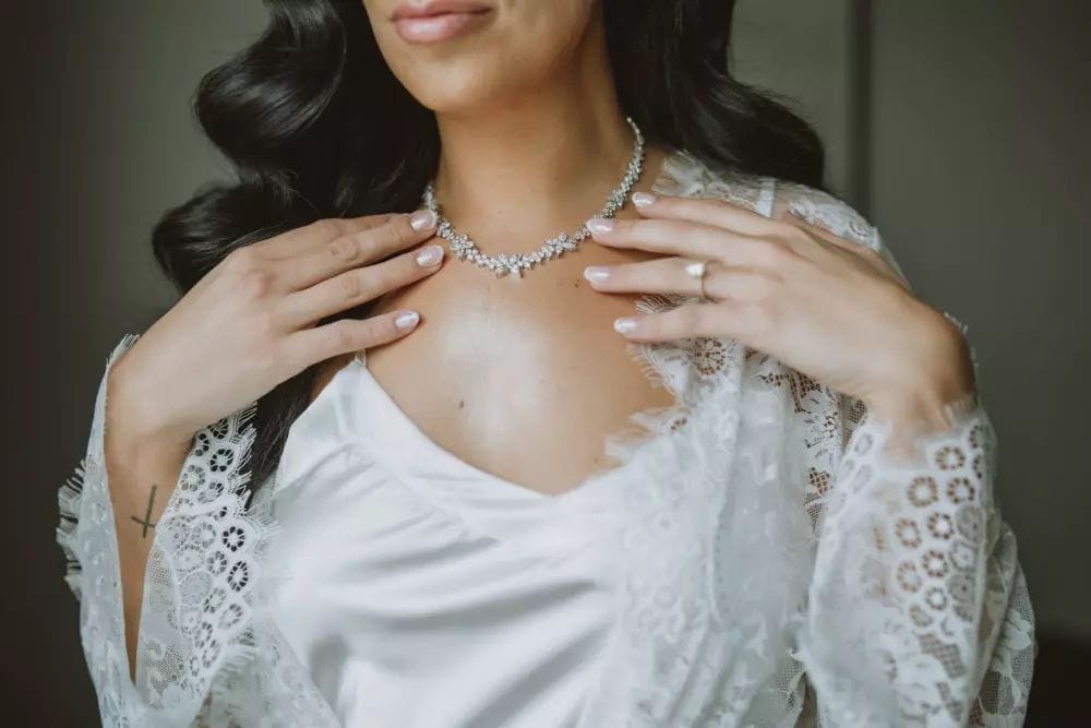 Consider the placement, weight, and length of your wedding necklace and choose the one you are fully comfortable with.