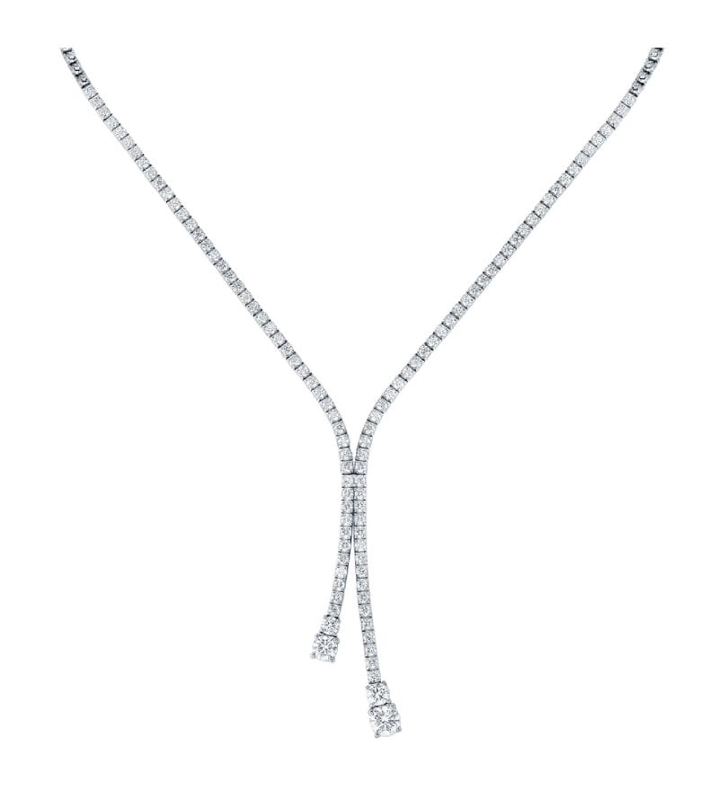 Lariat necklace with round brilliant diamonds set in 14K white gold