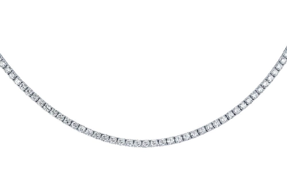 Like tennis bracelets, tennis necklaces feature a single row of uniformly sized diamonds along a delicate chain, offering a touch of understated luxury.