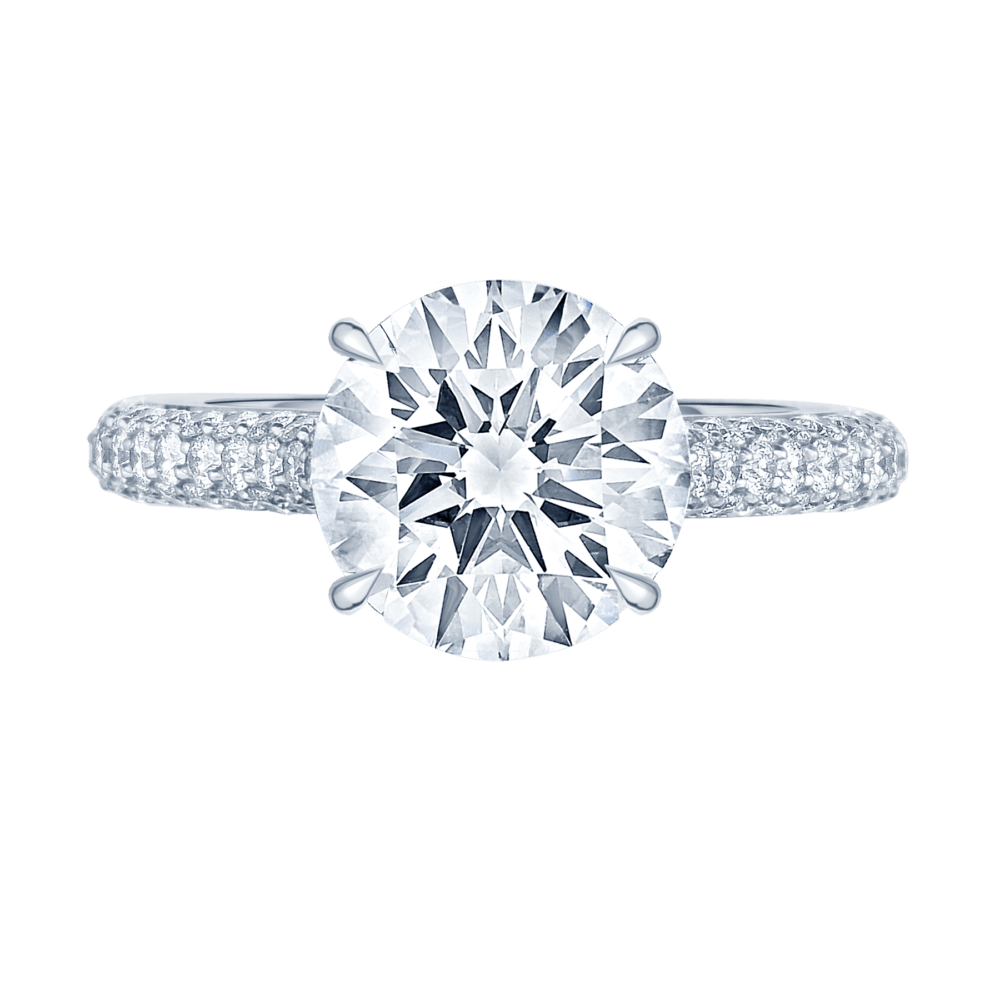It’s a great way to add sparkle to the band itself, and it pairs well with so many center stone settings. There’s also micro pavé, which uses even smaller stones for a super delicate look.