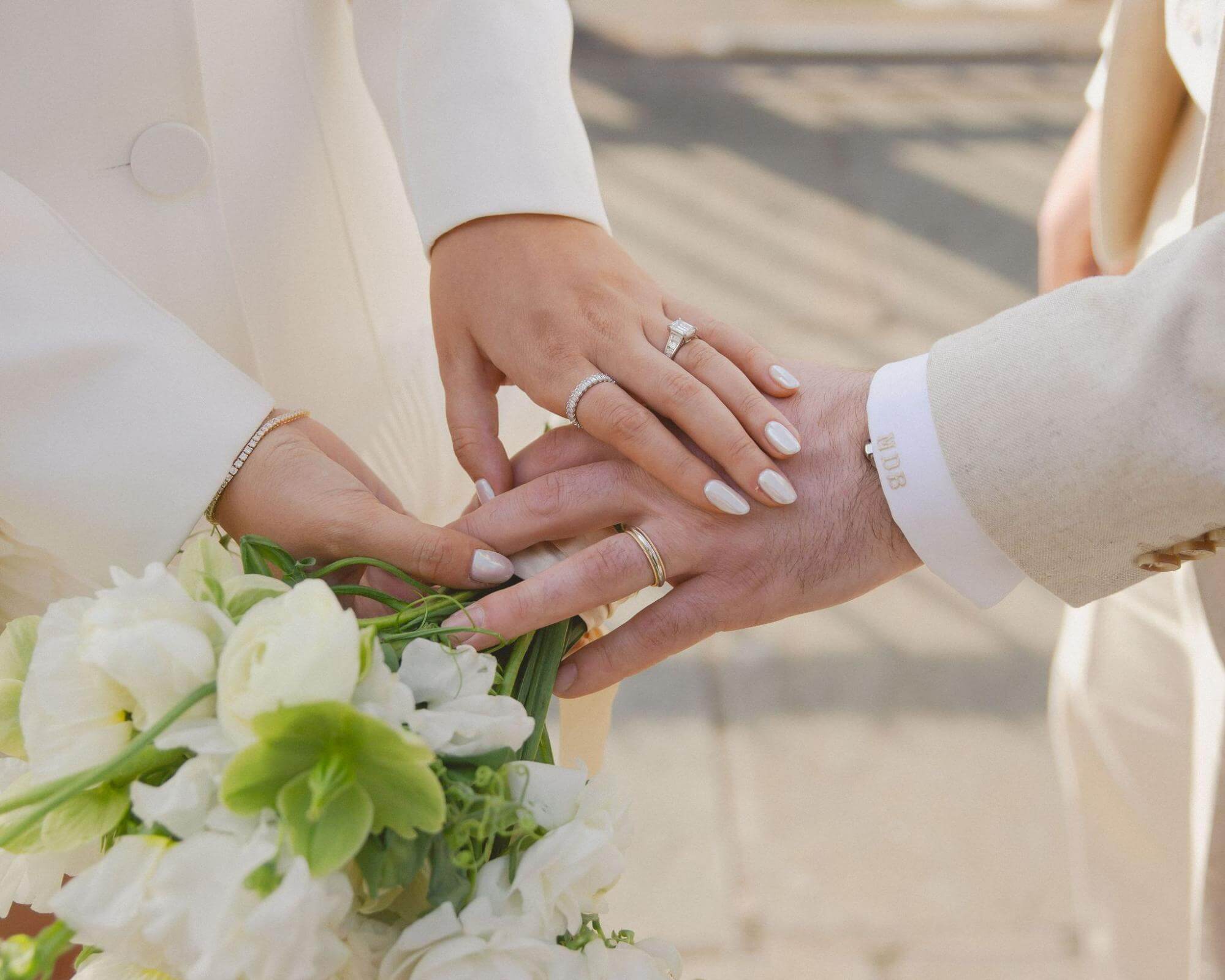 When it comes to bands, it’s all about how they pair with your engagement ring. If your engagement ring already has a bold design, a more minimal band will balance it beautifully.