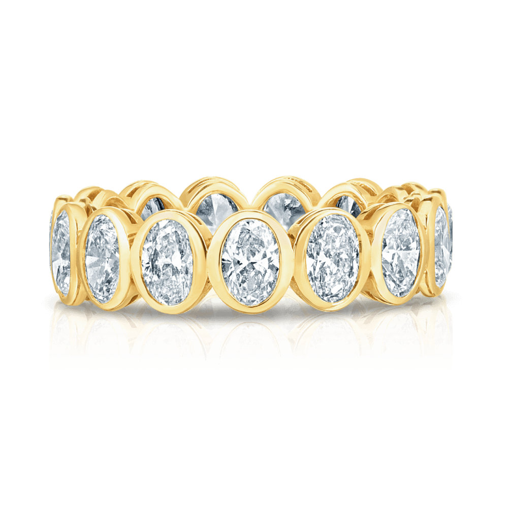 The bezel setting has a sleek, modern vibe and a slightly more understated sparkle since part of the diamond is covered. Bezels are trending in 2025, so it’s the perfect time to consider this design for your engagement ring!
