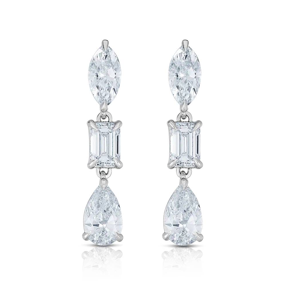 THREE STONE MULTI-SHAPE DIAMOND DROP EARRINGS