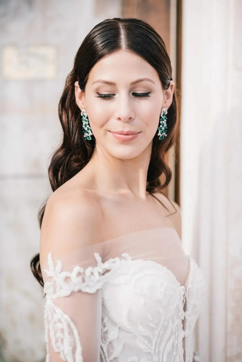 Sapphires’ cool tones work seamlessly with white dresses or bridal looks that feature silver accents, adding sophistication to any bridal ensemble.